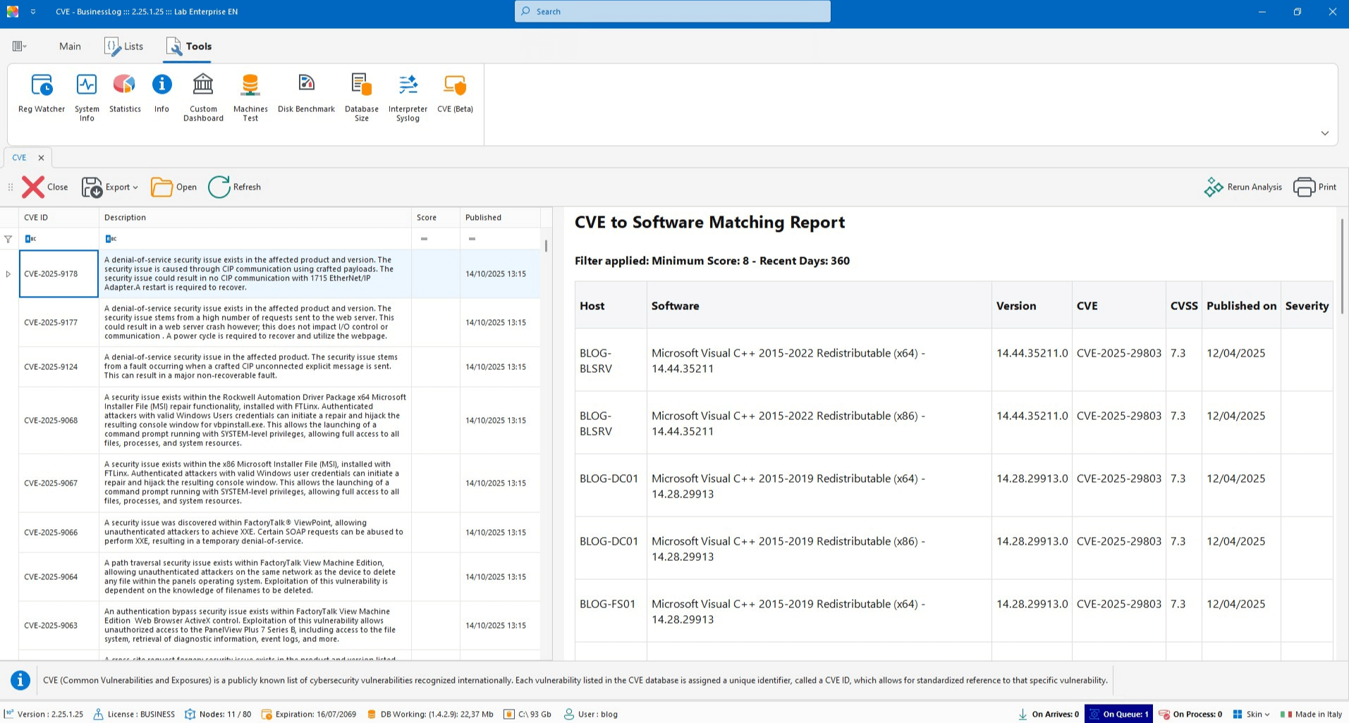 CVE list updated hourly by NIST. AI generates a report based on matches with software installed on networked machines.