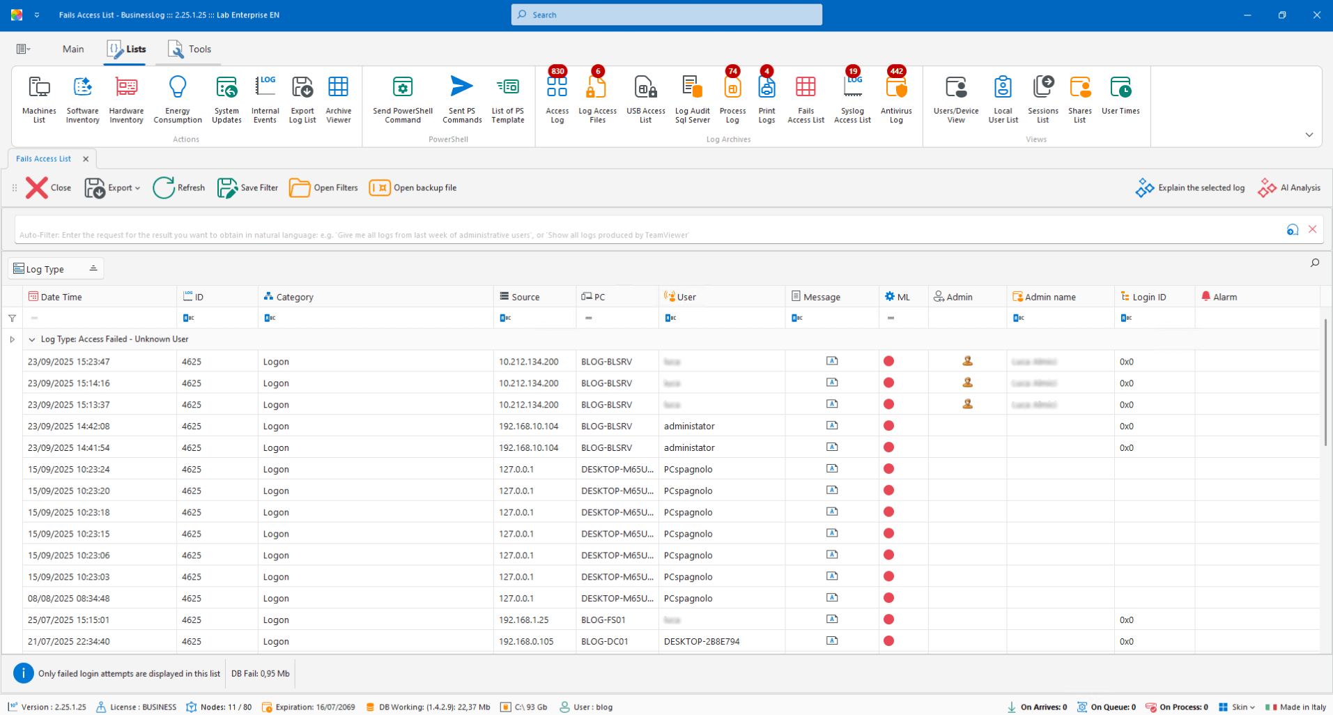 View dedicated to all FAIL accesses. AI proposes an in-depth analysis and actions to reduce the recurrence of the error.