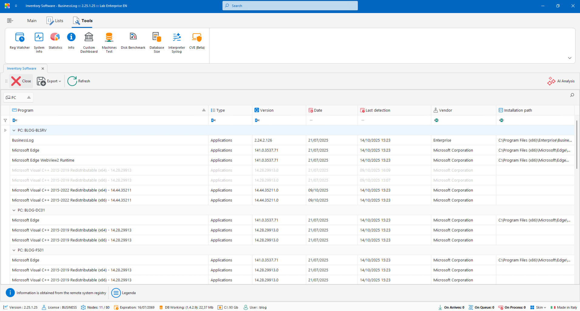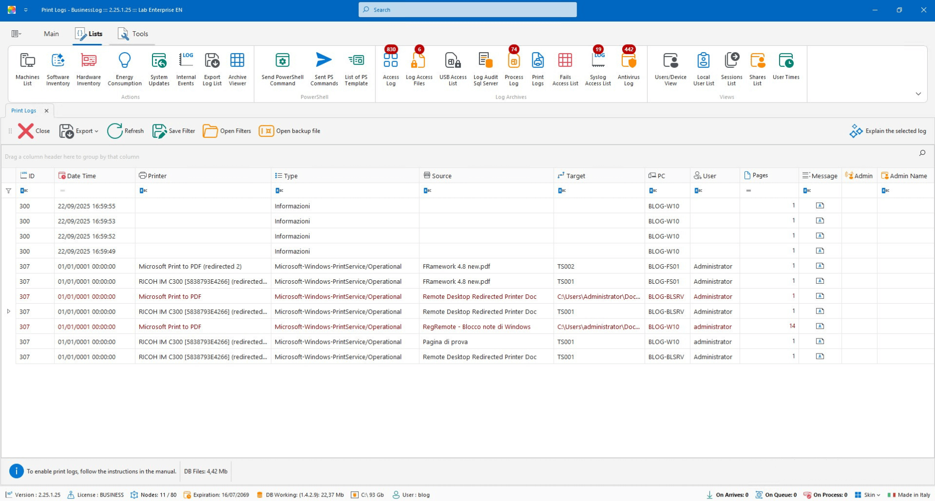 Business LOG Server enables server-level capture without the use of agents or external services on all machines in the corporate structure in the domain.