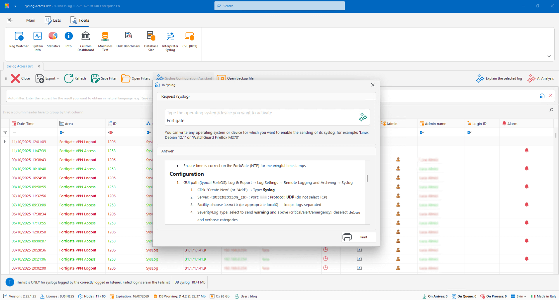 Business LOG offers seamless integration with leading software on the market, providing seamless log management. This extended compatibility allows data from different platforms and applications to be collected, analyzed and monitored, improving the organization's operational efficiency and IT security.