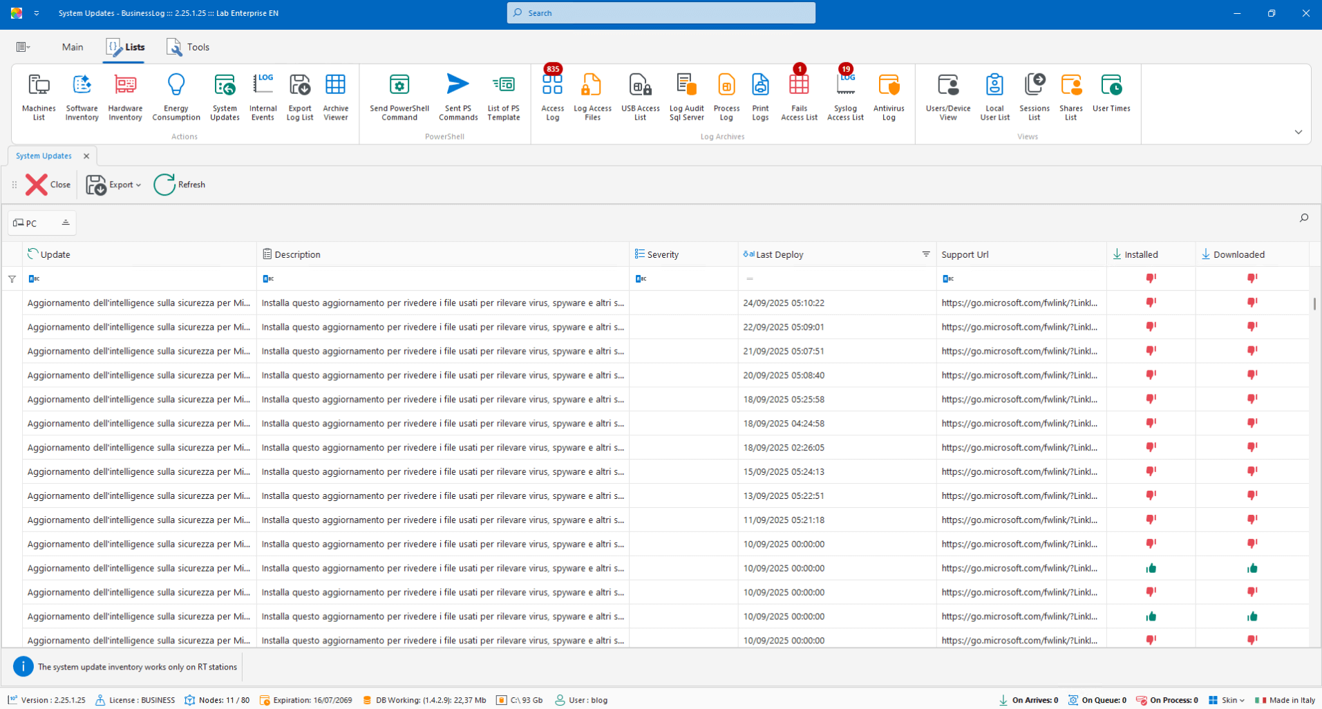 Controlled machines will receive, in a special list, all listed, downloaded and installed Windows Update updates. In addition to updates, all HotFixes applied will also be reported.